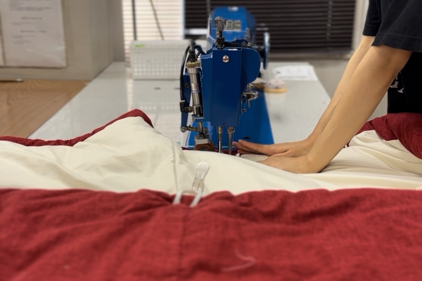 上層には綿わた、下層にはポリエステルわたを使用することで、軽量化を図って取り扱いしやすくしています。