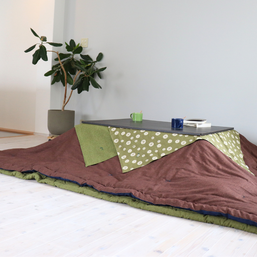こたつ布団は、あたたかな時間のまんなかにあるもの。ひとりでくつろぐときも、家族や友人と囲むときも、そこには自然と笑顔が集まります。