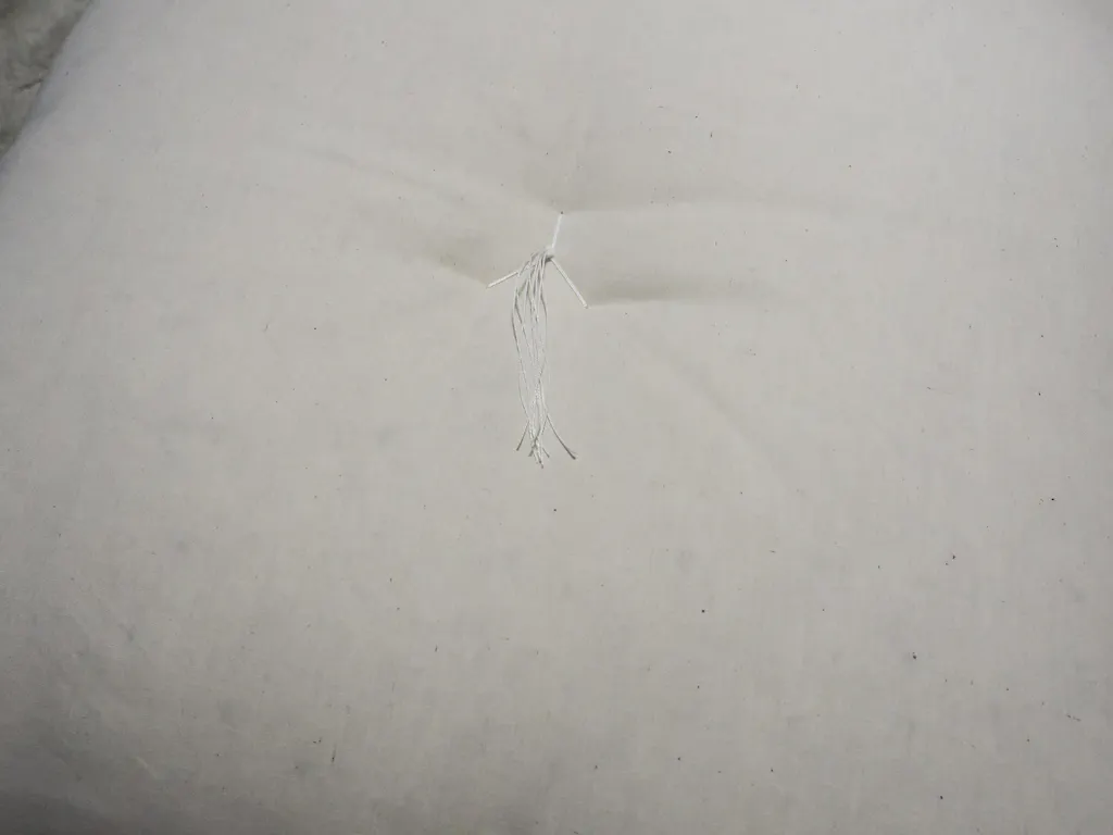 わた入れは、座布団の心地よさを決める大切な工程です。ただわたを詰めるのではなく、製品に合わせてわたを成形し、入れていきます。体重のかかる中央部分は、わたを何層にも重ねます。わたと対話し、然るべき場所に、わたを置いていくのです。