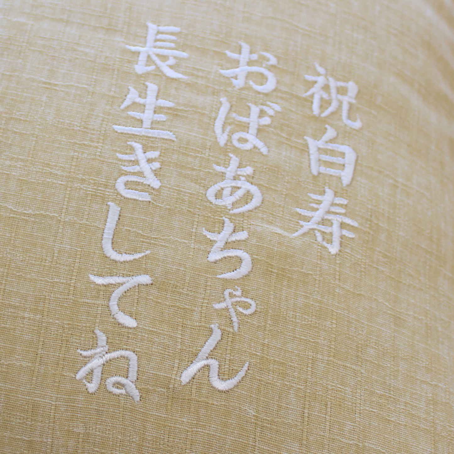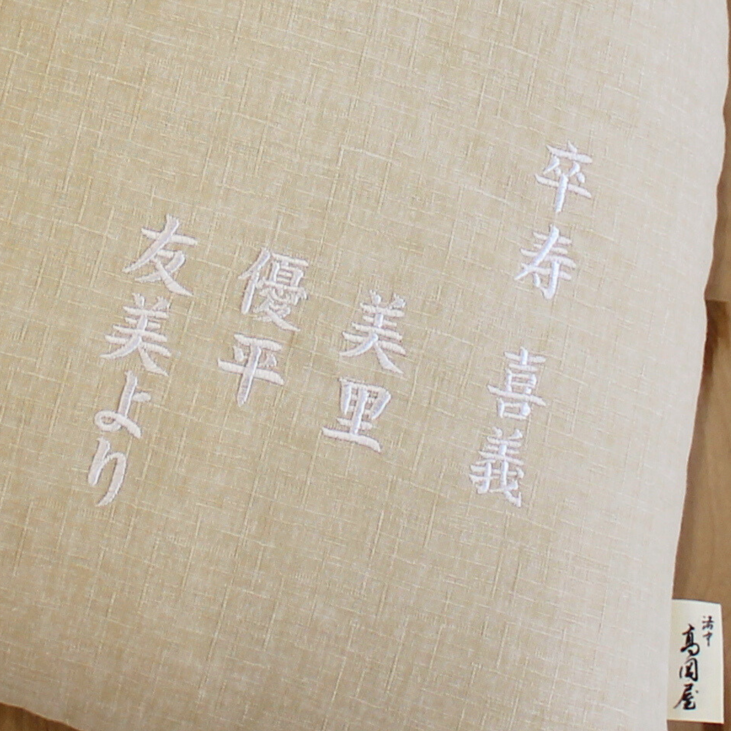 • 40文字以上の刺繍をご希望の場合は、お問い合わせください。40文字以内でも、レイアウト等をご相談させていただく場合があります。