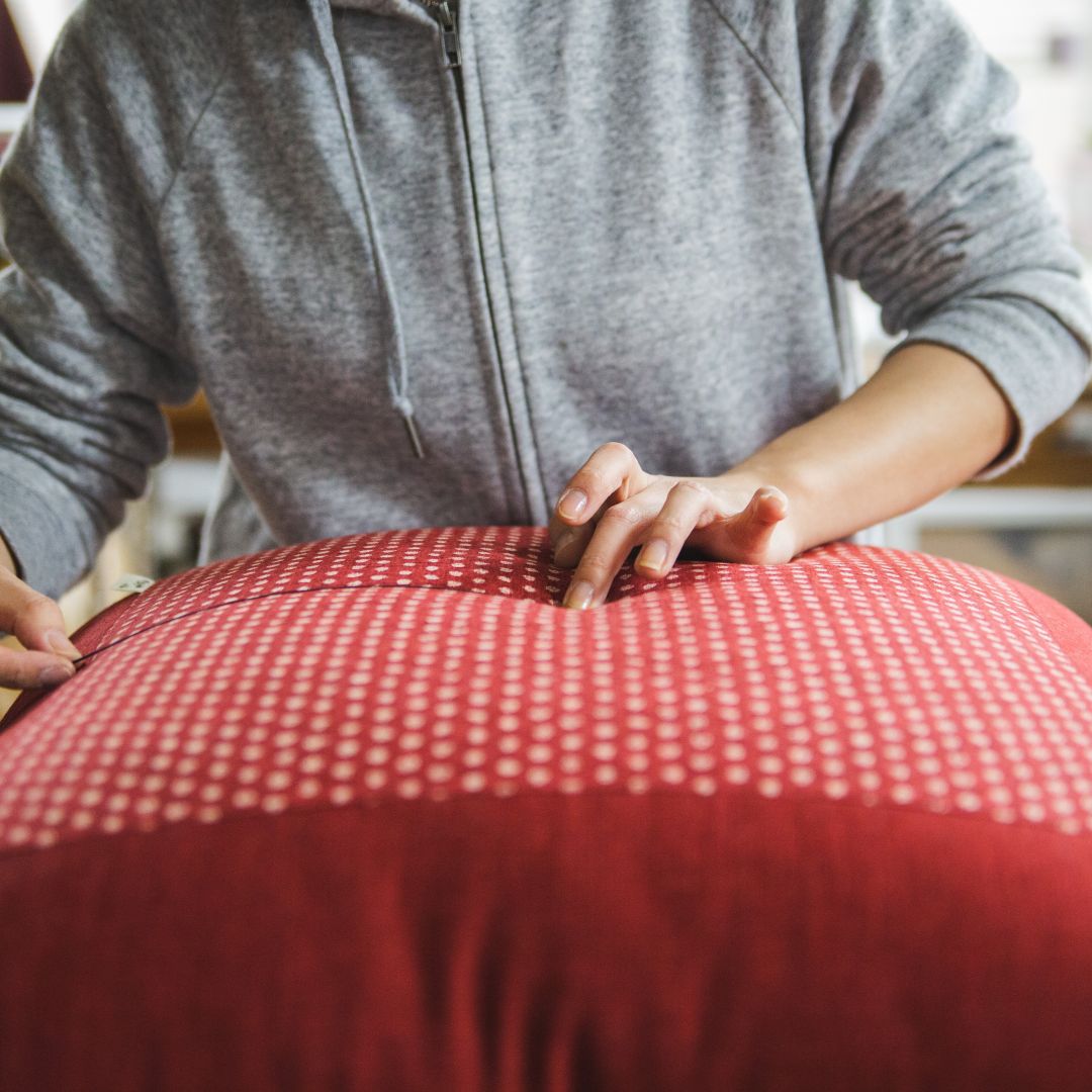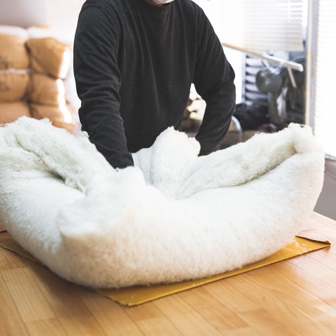 1919年、京都の老舗百貨店の布団加工所として誕生した高岡屋。創業当時から作り続けているもののひとつが座布団です。