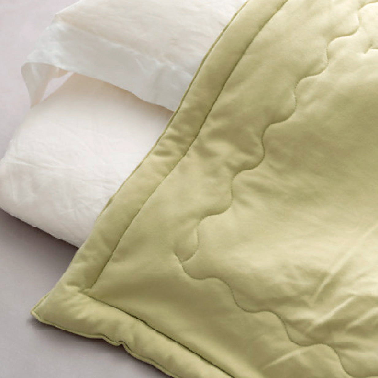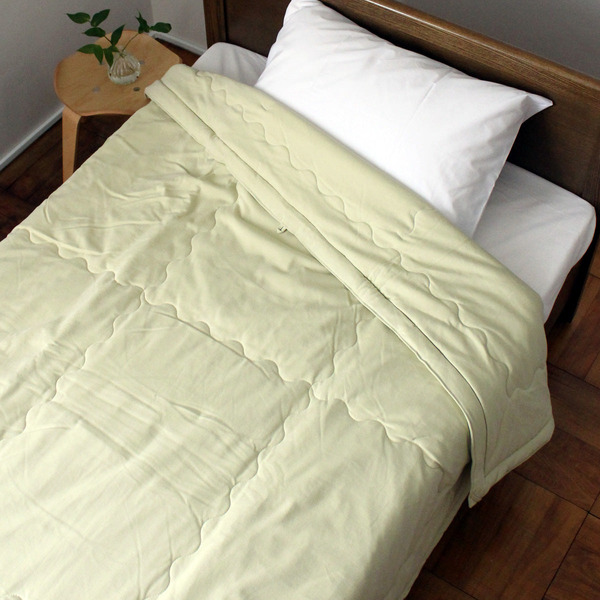 春夏は肌布団として、冬は毛布替わりに羽毛布団の中掛けとして、1年を通して快適にお使いいただけます。シルクではなく綿生地のため、上掛けのお布団が滑り落ちづらい点もうれしいです。