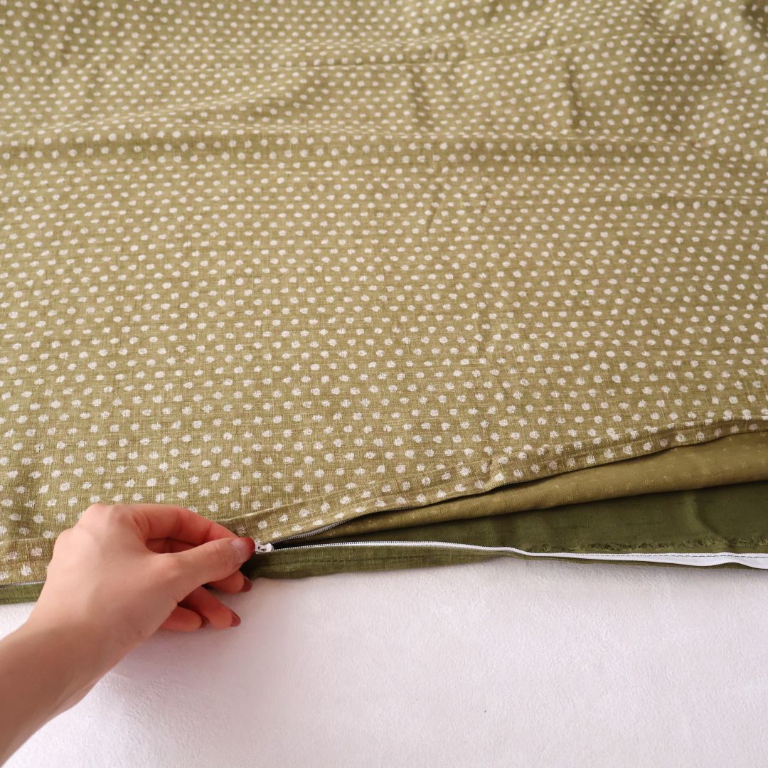 表と裏で異なる色柄が選択可能なリバーシブルデザインも魅力。季節や気分に合わせて、気軽にイメージを切り替えられます。またカバーの周囲には「ステッチ」と呼ばれる別の縫い目を入れており、本縫いのほつれ防止だけでなく、よりスタイリッシュな装いに仕上げています。