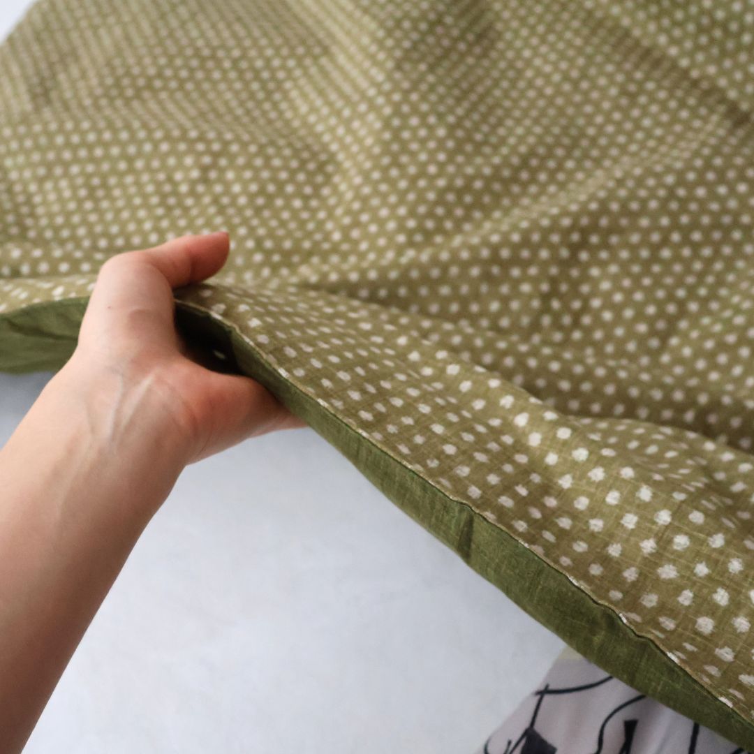 生地は色柄豊富な「木綿」の中から、お好みのものをお選びいただけます。リバーシブル仕様なので、表と裏で異なる印象を楽しめるのも嬉しいポイント。季節や気分に合わせて、くるっと気軽にイメージチェンジできます。
