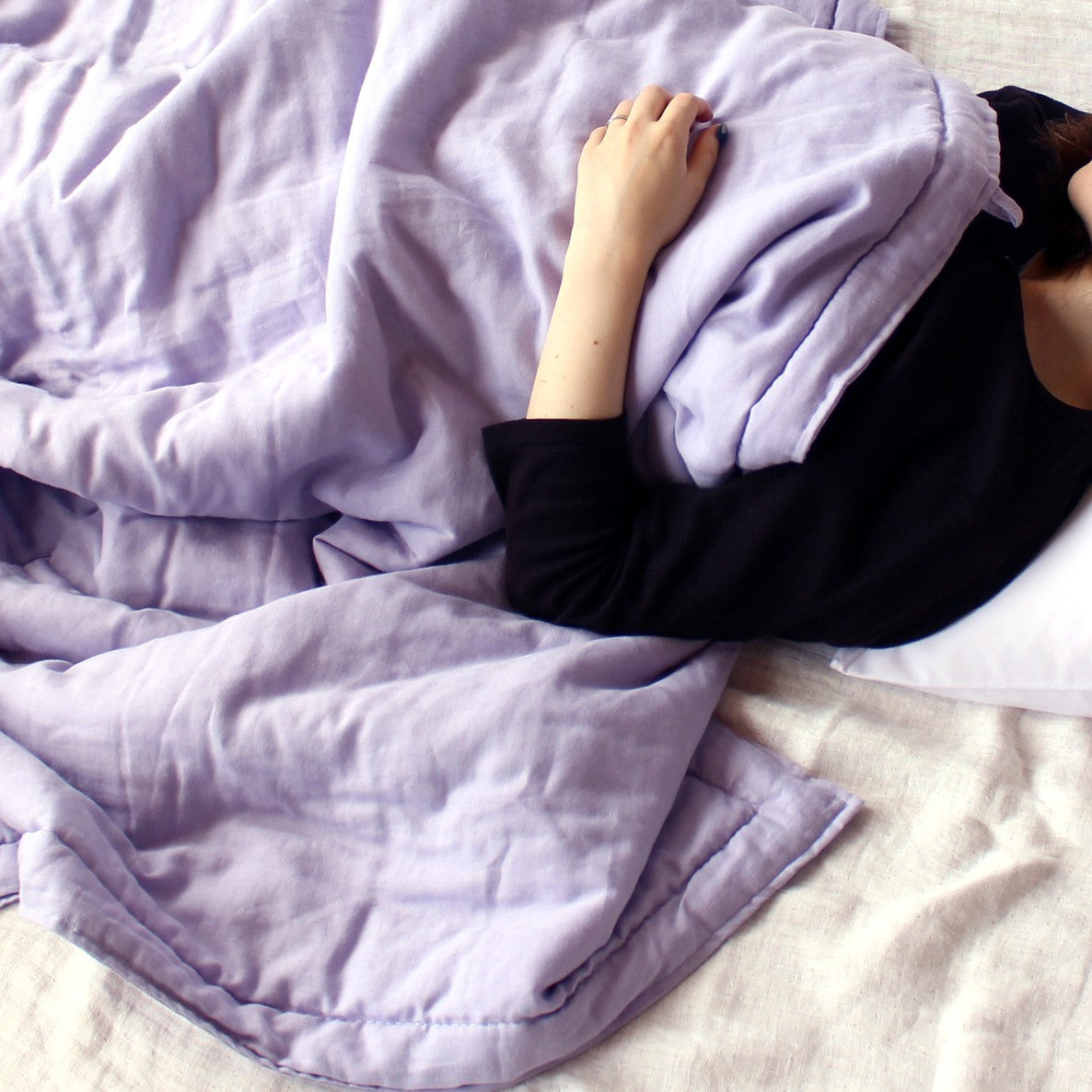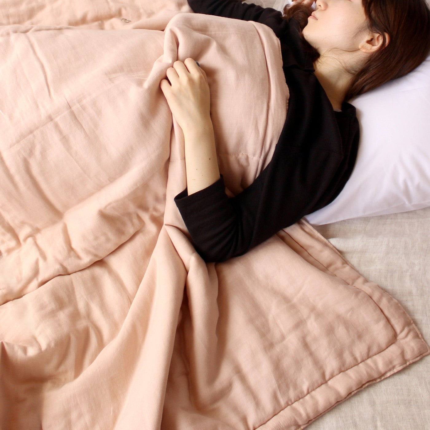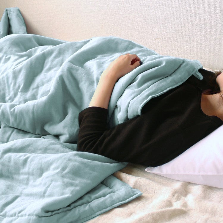 春夏は肌布団として、冬は毛布替わりに羽毛布団の中掛けとして、1年を通して快適にお使いいただけます。シルクではなくガーゼ生地のため、上掛けのお布団が滑り落ちづらい点もうれしいです。
